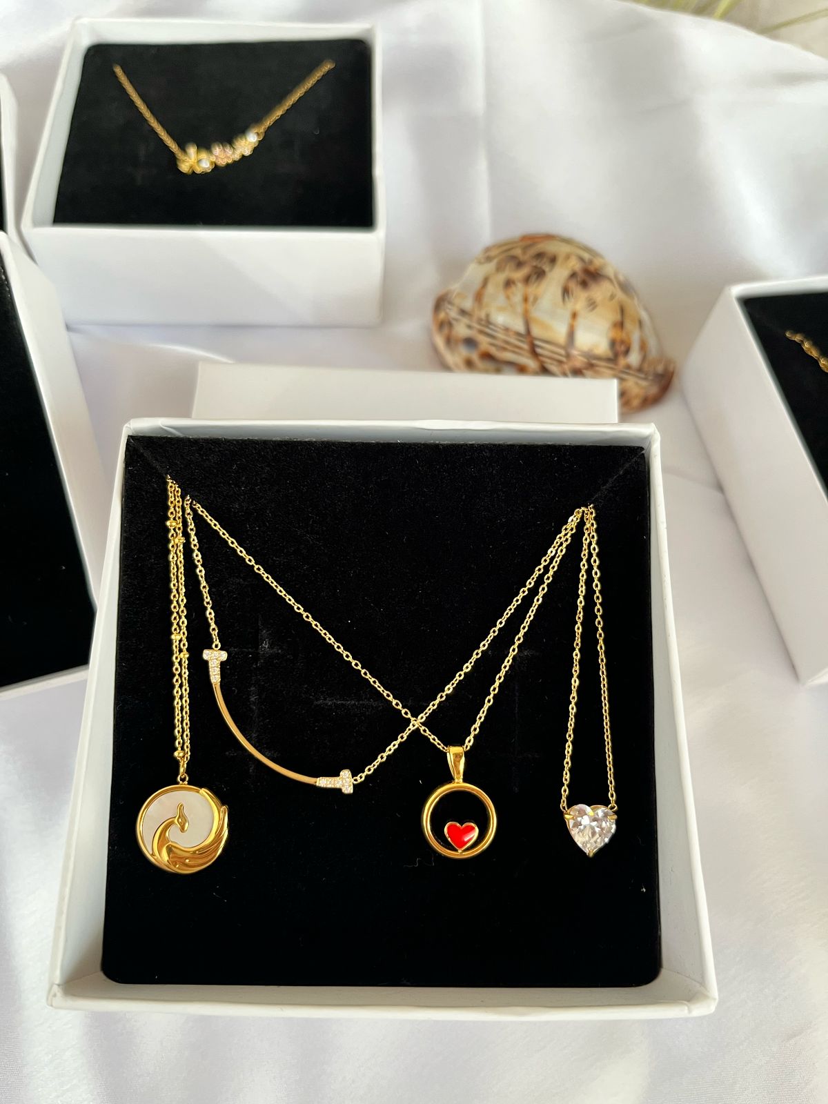 Our necklaces are crafted with precision and creativity, featuring anti-tarnish materials. Each piece combines elegance and modernity, perfect for any event or outfit.